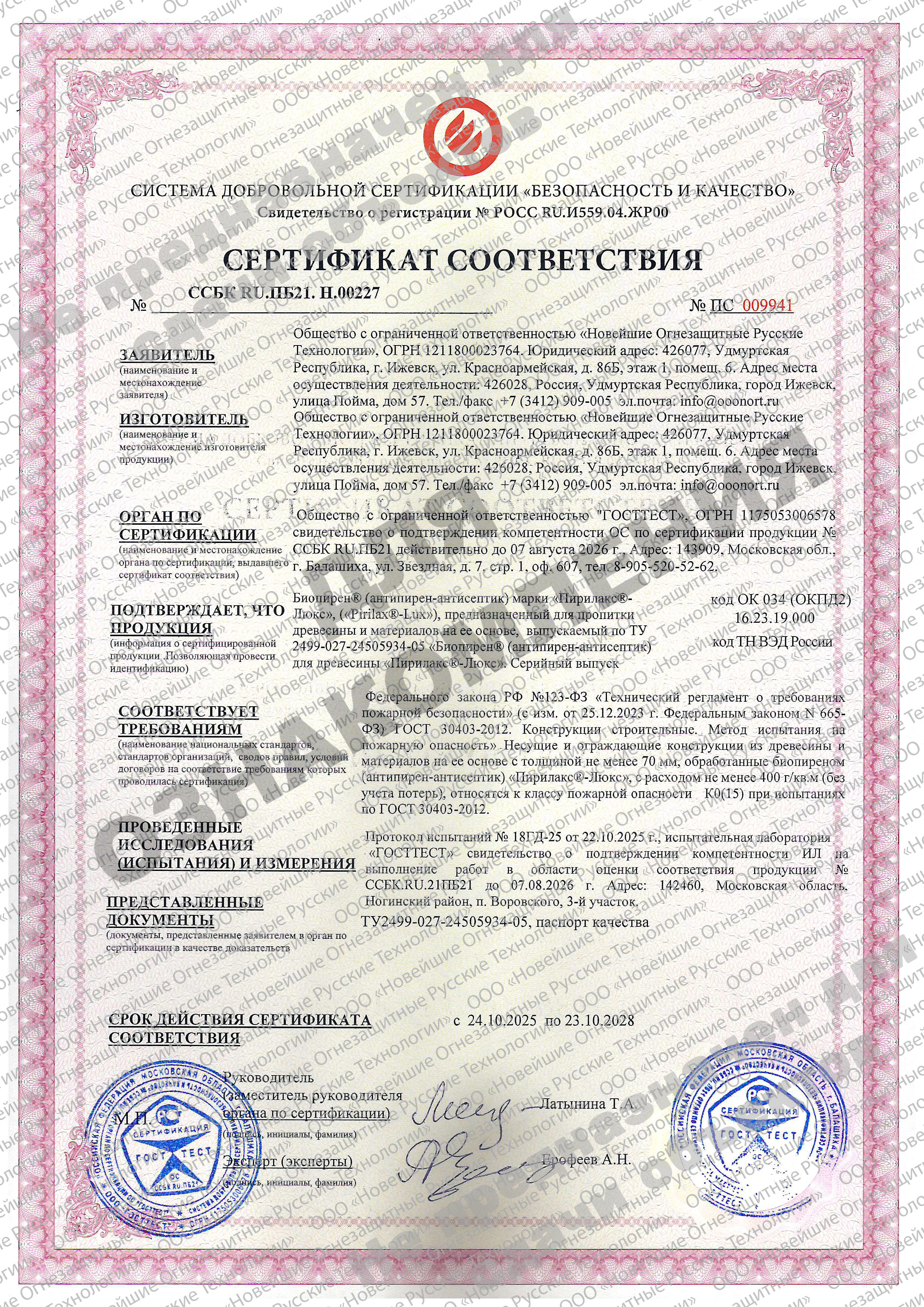Расход для обеспечения показателей пожарной опасности древесины Г1, РП1, В1, Д2, Т2, не менее | 400 г/м2 |