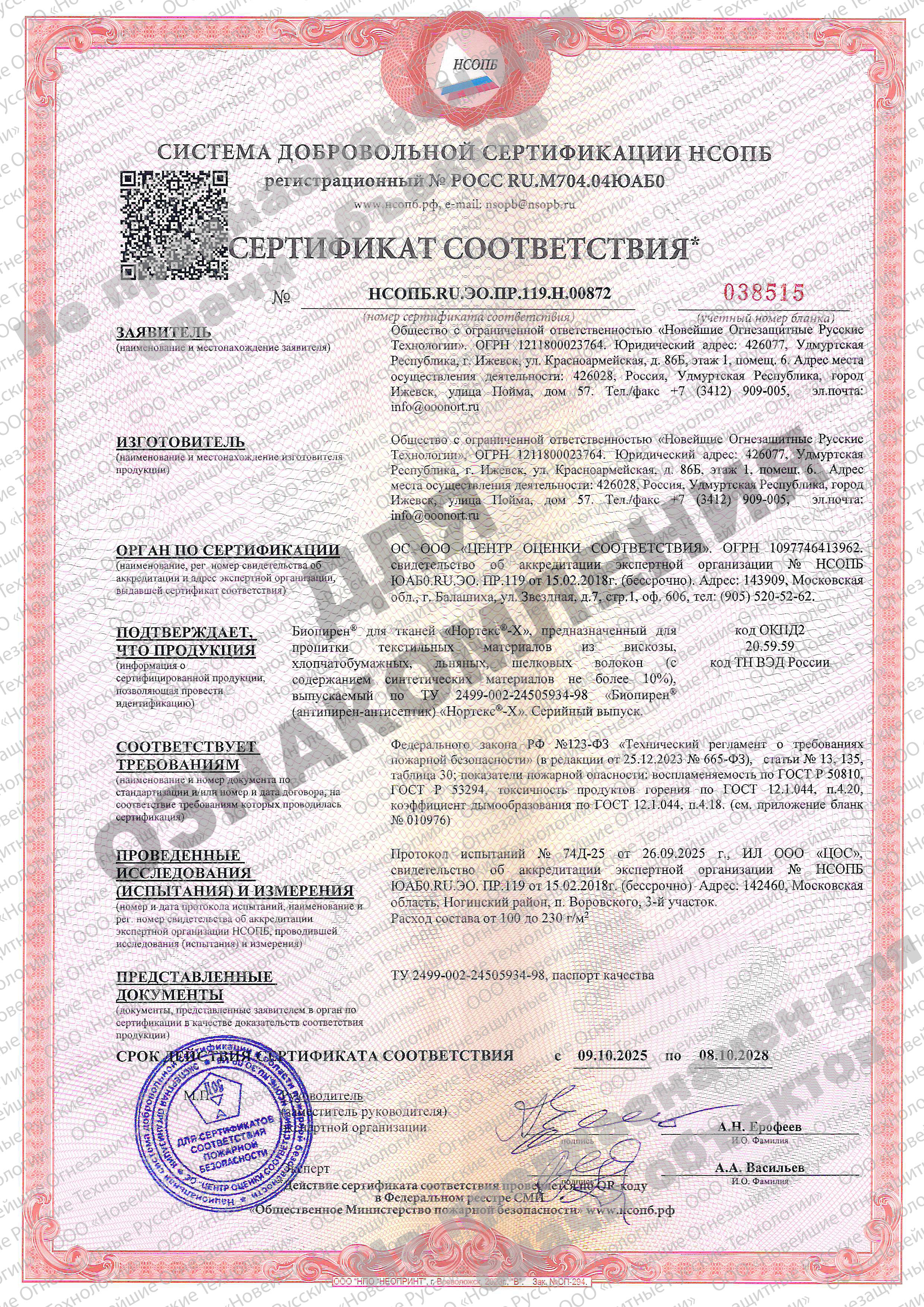 Где купить Биопирен® «Нортекс®-Х» – огнебиозащитный состав для х/б тканей