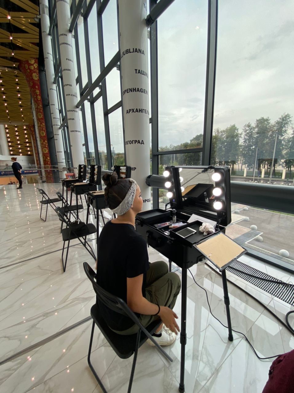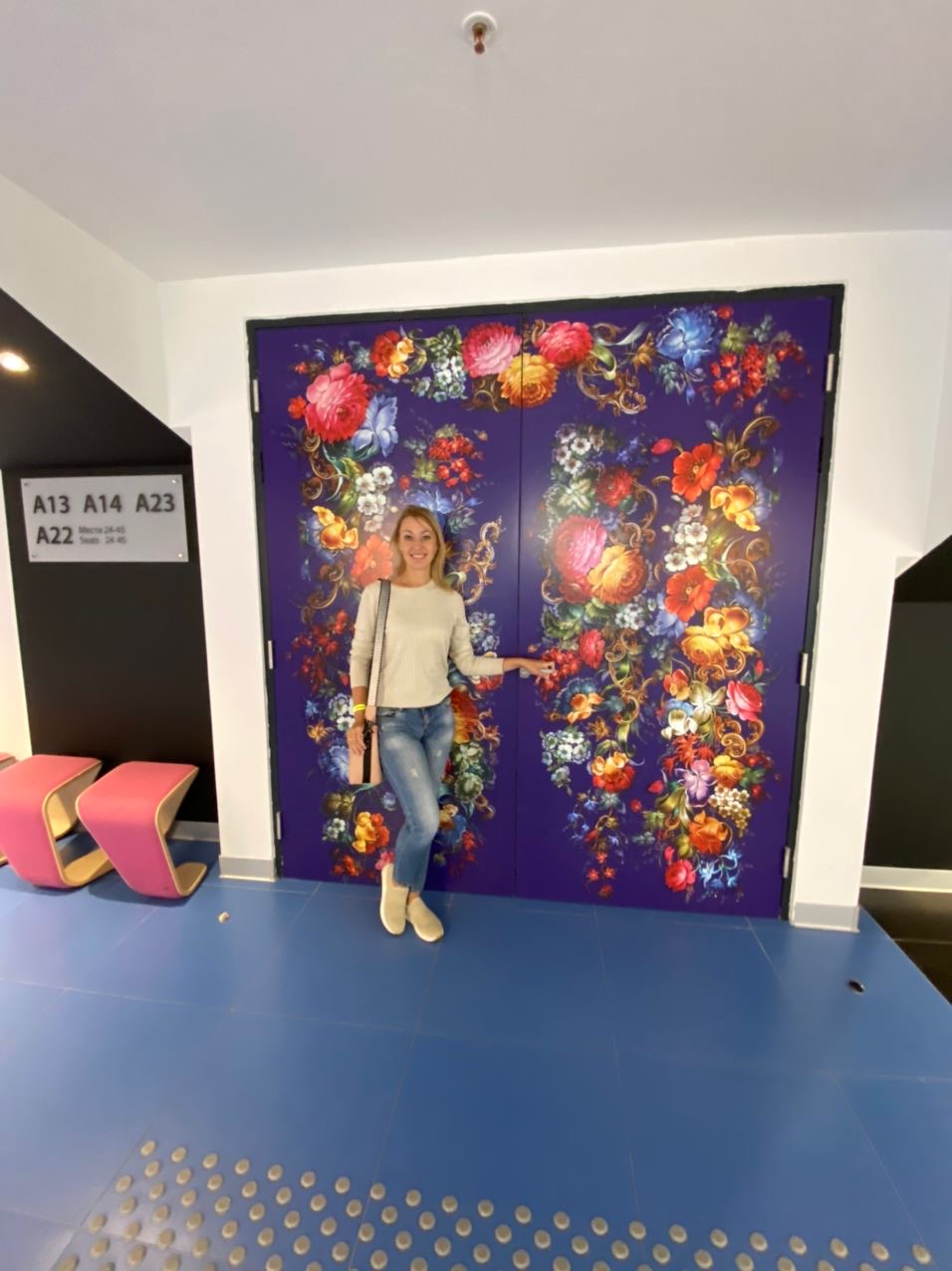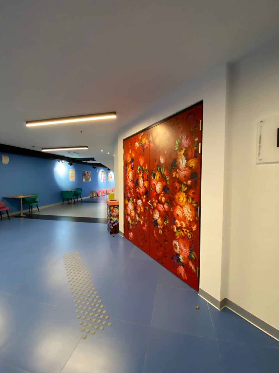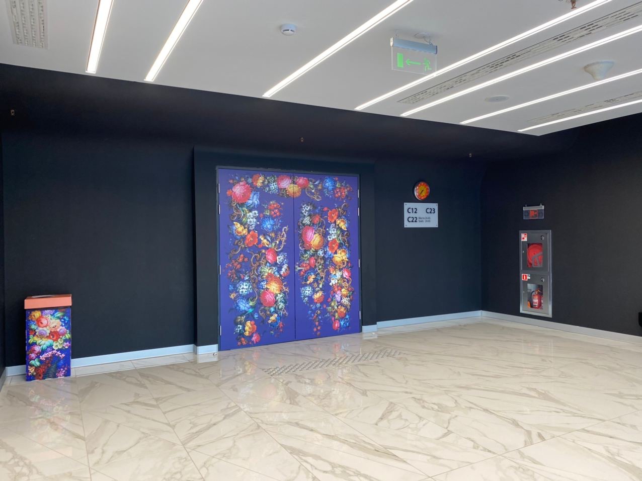Дворец пропитан русской культурой. На входе – мозаика и колонны под хохлому. В оформлении только яркие, насыщенные цвета.